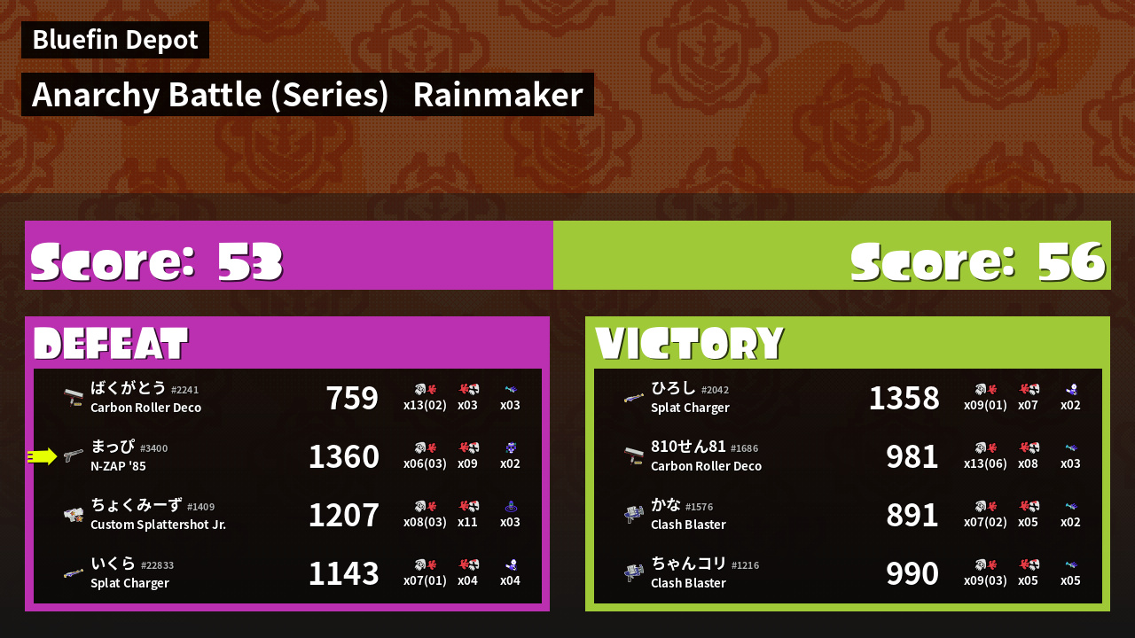 | Mode | Rainmaker - Anarchy Battle (Series) |