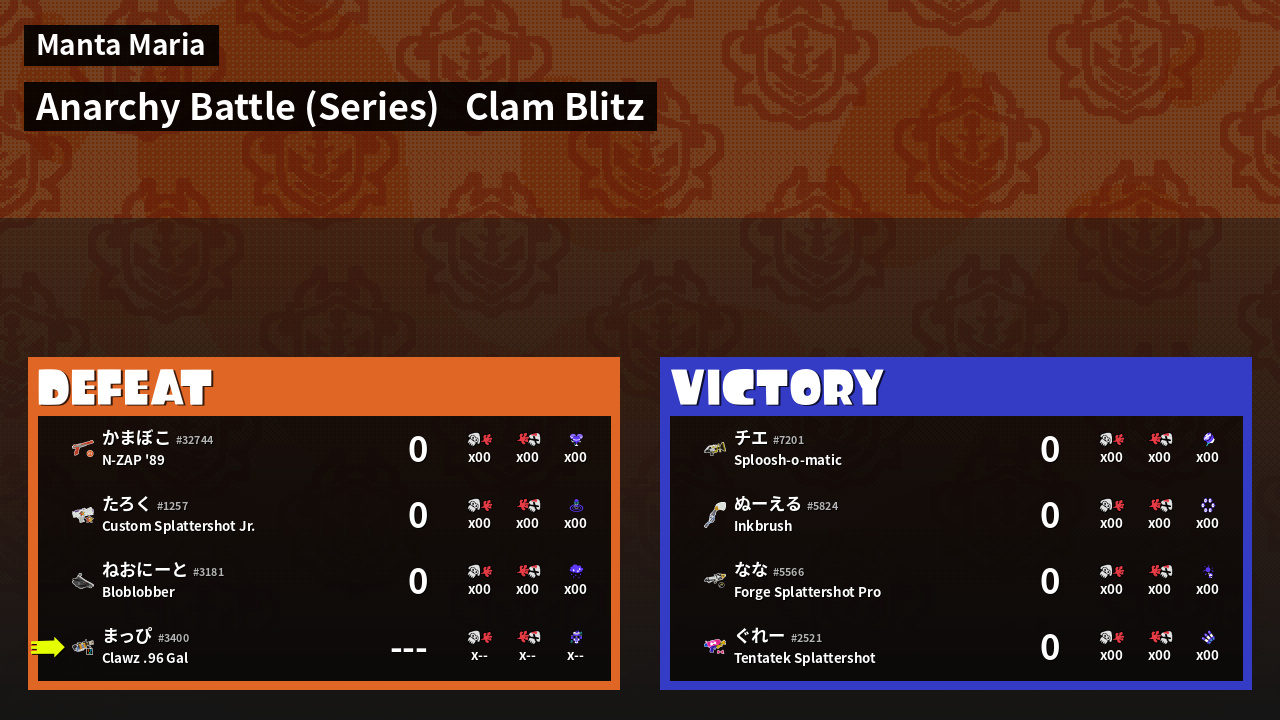 | Mode | Clam Blitz - Anarchy Battle (Series) |