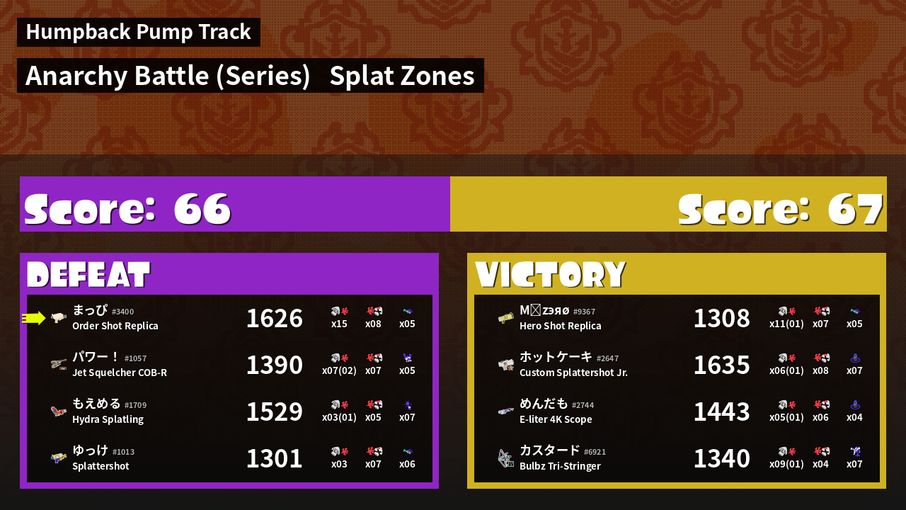 | Mode | Splat Zones - Anarchy Battle (Series) |