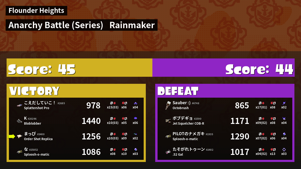 | Medals | #1 Score Booster #1 Super Jump Spot #1 Splat Assister |