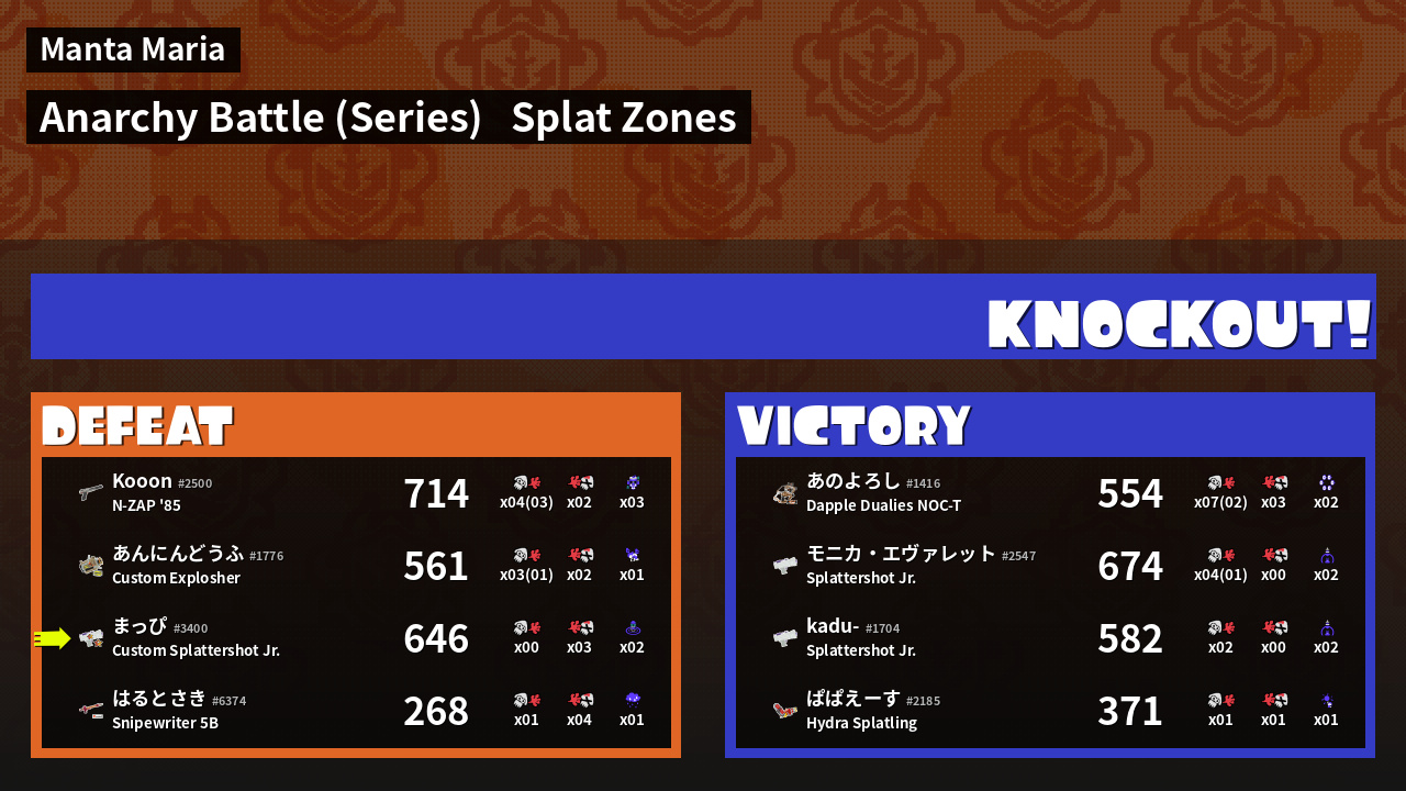 | Mode | Splat Zones - Anarchy Battle (Series) |