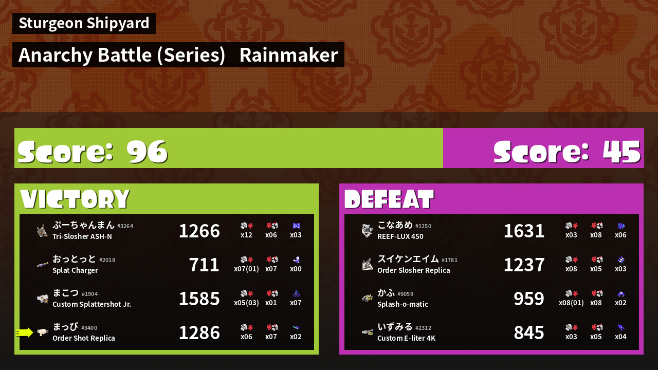 | Mode | Rainmaker - Anarchy Battle (Series) |