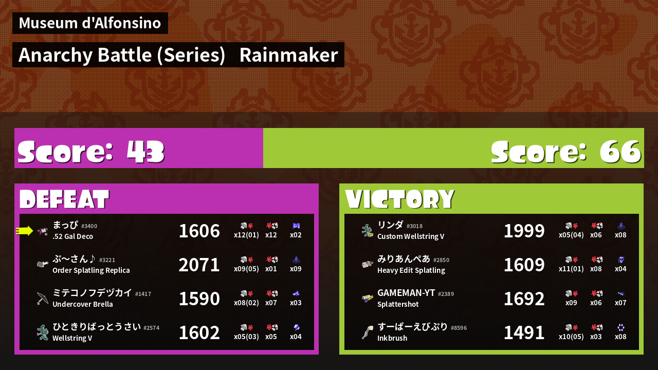 | Mode | Rainmaker - Anarchy Battle (Series) |