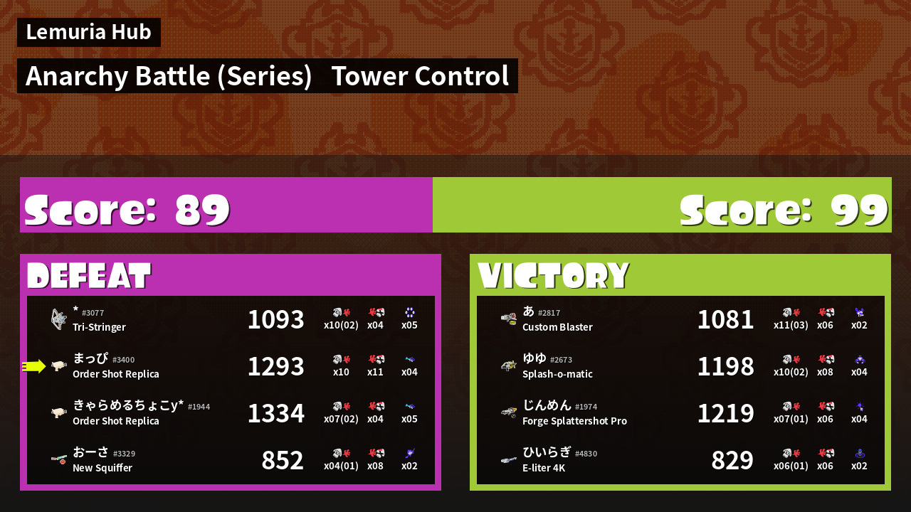 | Mode | Tower Control - Anarchy Battle (Series) |