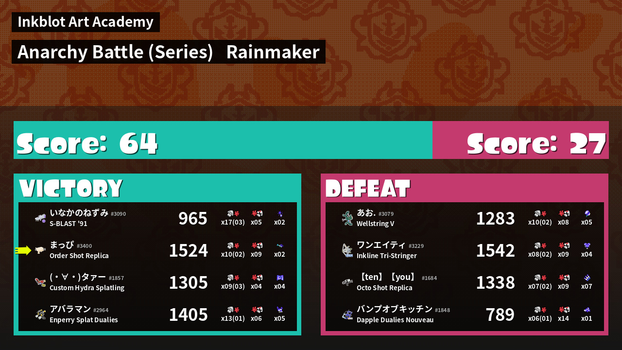 | Mode | Rainmaker - Anarchy Battle (Series) |