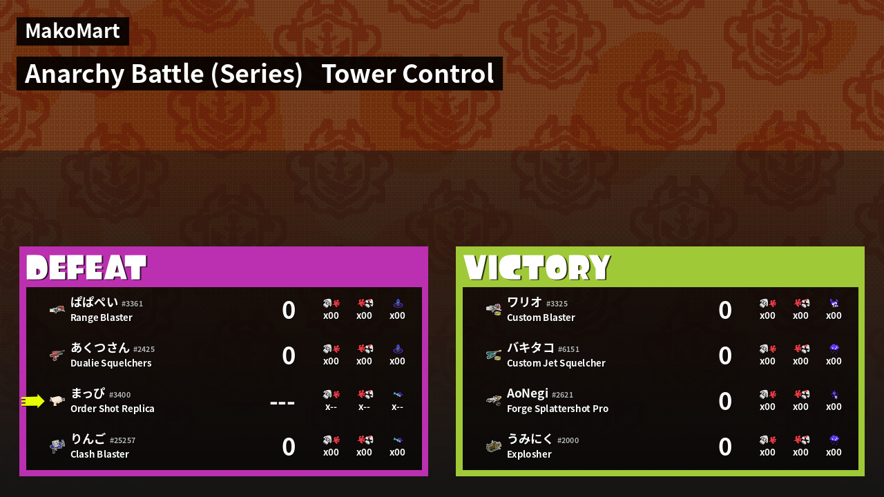 | Mode | Tower Control - Anarchy Battle (Series) |
