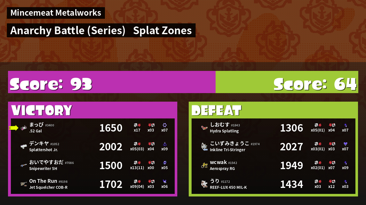 | Mode | Splat Zones - Anarchy Battle (Series) |