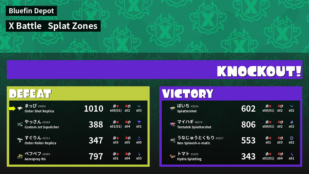 | Medals | #1 Overall Splatter #1 Splat Zone Inker #1 Splat Zone Guard |