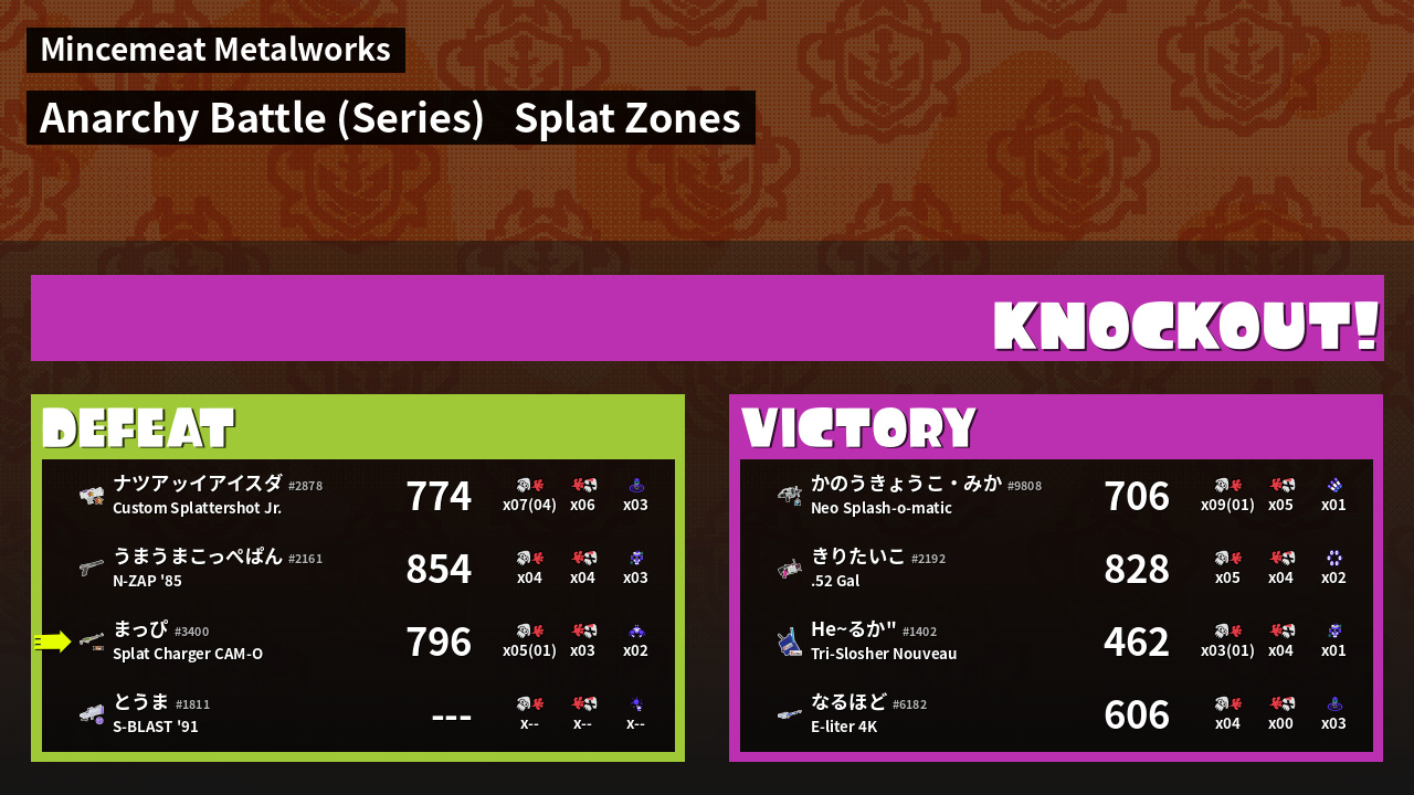 | Mode | Splat Zones - Anarchy Battle (Series) |