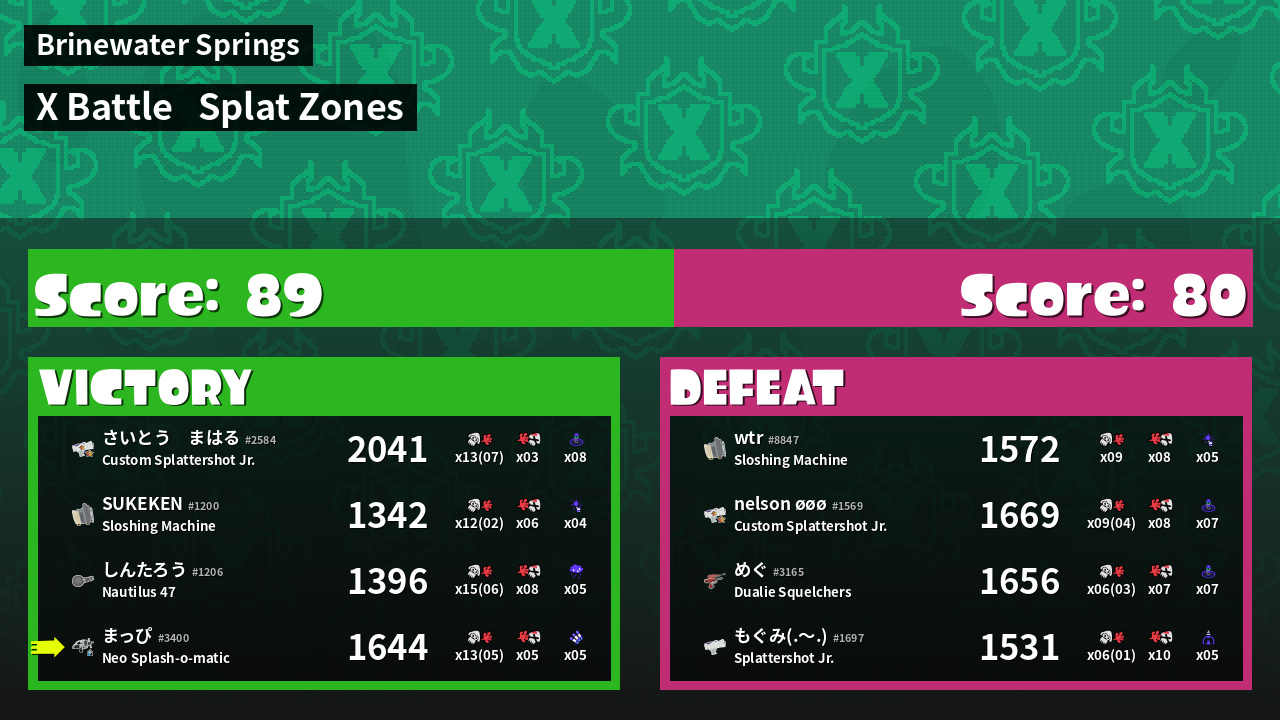 | Mode | Splat Zones - X Battle |
