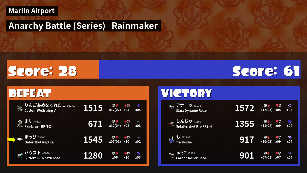 Results of まっぴ's Battle