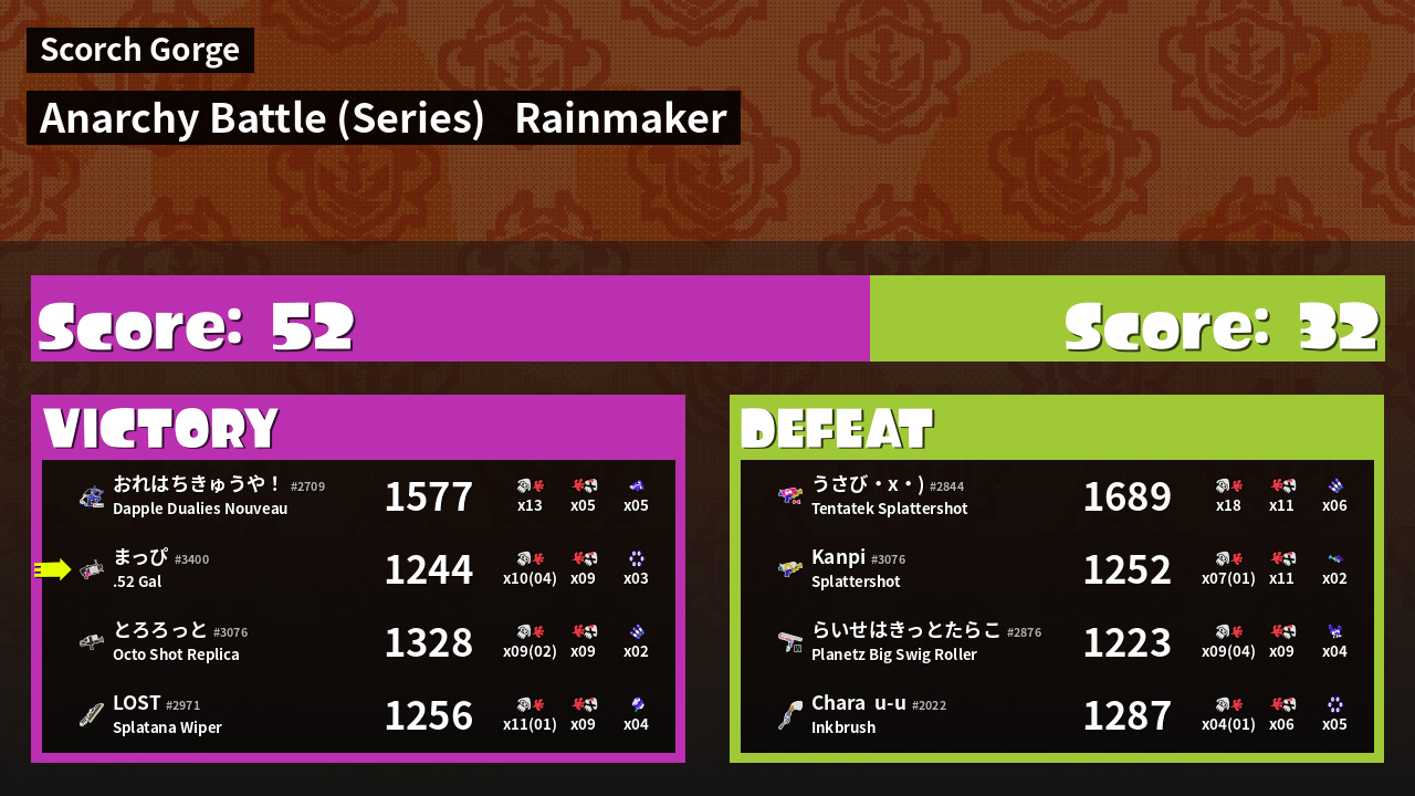 | Weapon | .52 Gal ( Splash Wall / Killer Wail 5.1) |