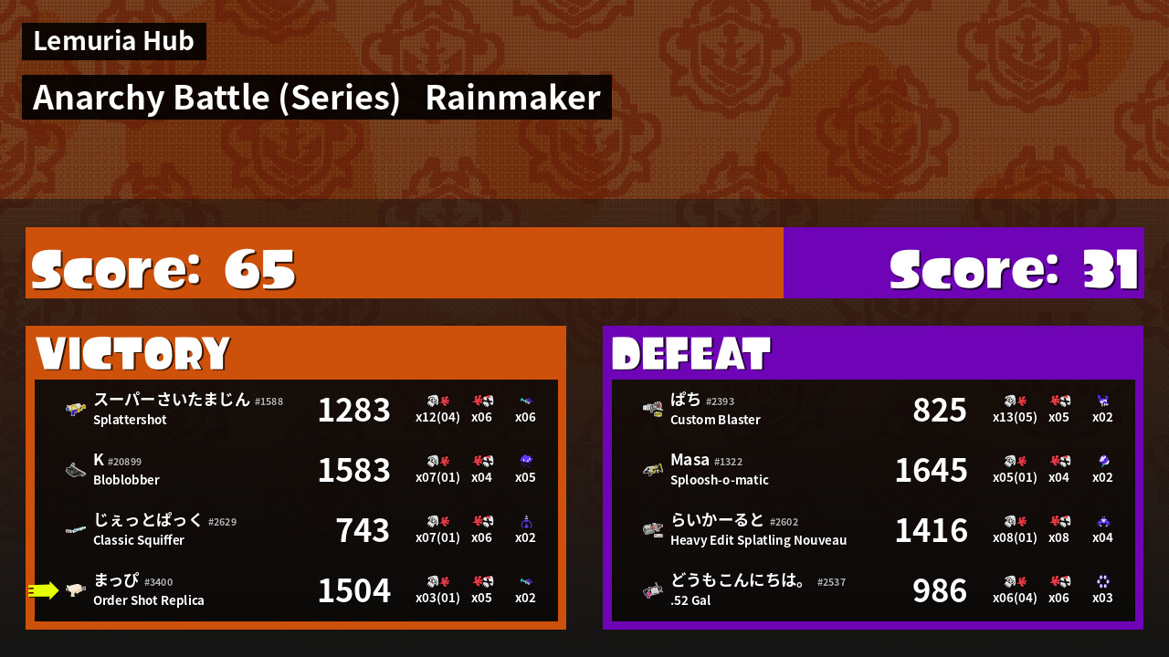 | Mode | Rainmaker - Anarchy Battle (Series) |