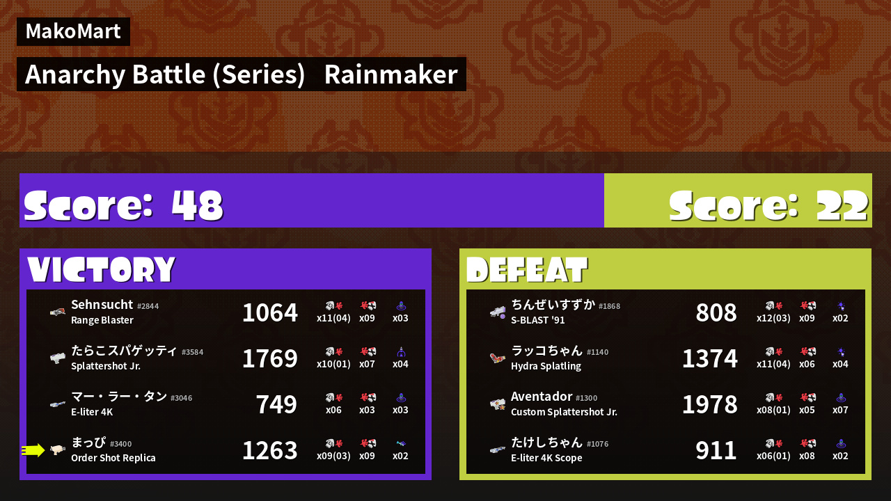 | Mode | Rainmaker - Anarchy Battle (Series) |