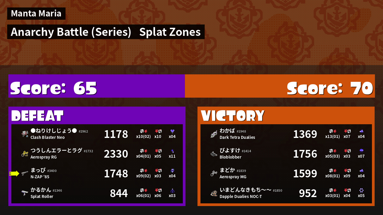 | Medals |   #1 Splat Zone Guard  #1 Splat Assister  #1 Ground Traveler |