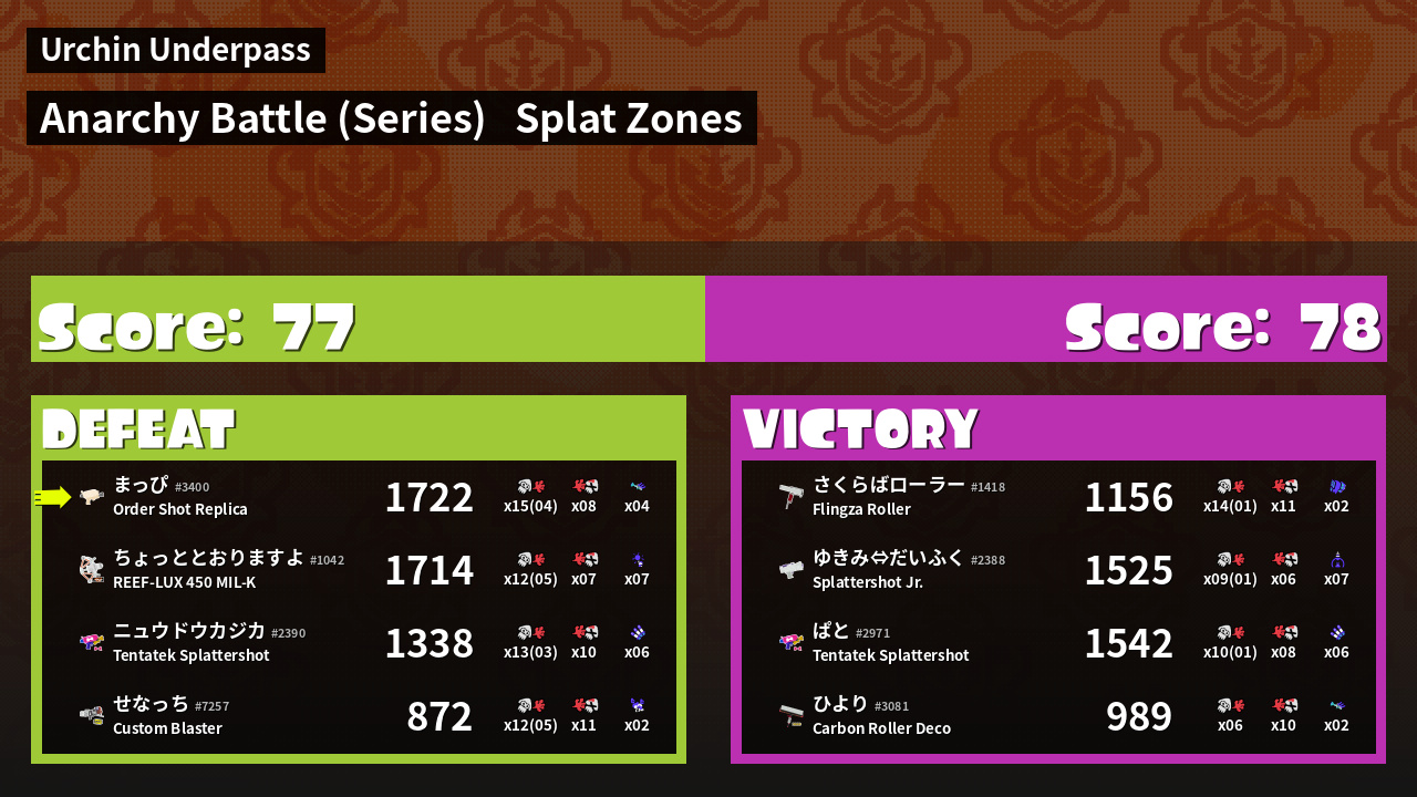 Results of まっぴ's Battle