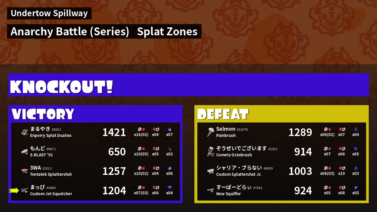 | Mode | Splat Zones - Anarchy Battle (Series) |