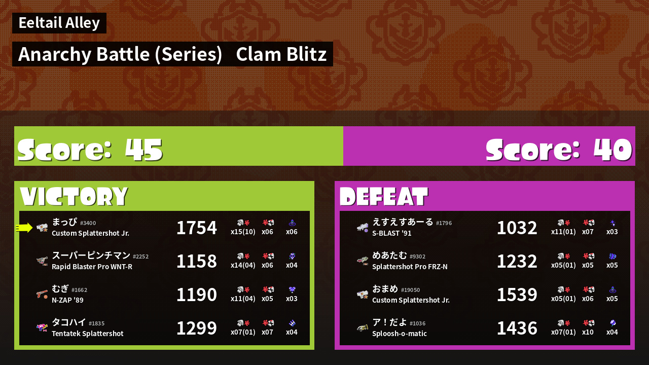 | Mode | Clam Blitz - Anarchy Battle (Series) |