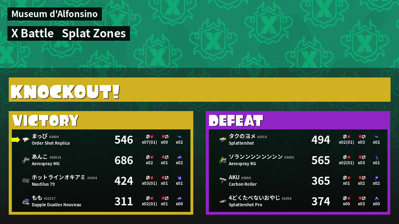| Mode | Splat Zones - X Battle |