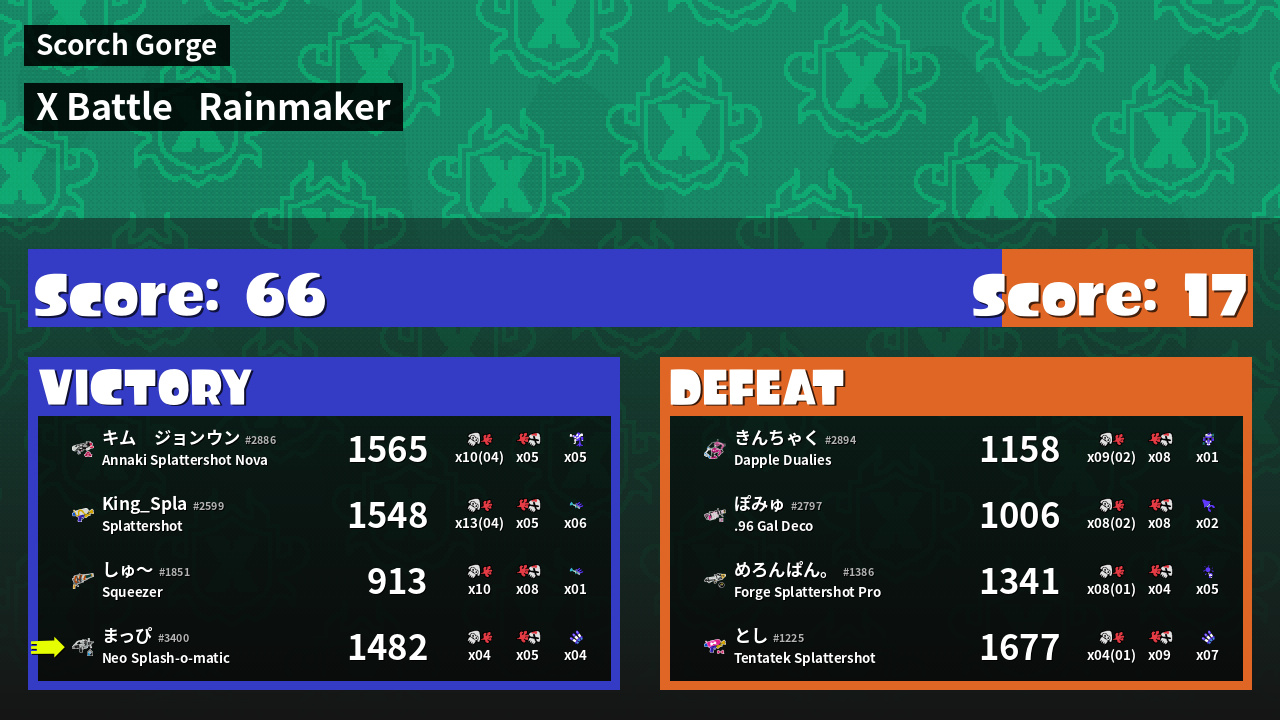 | Weapon | Neo Splash-o-matic ( Suction Bomb / Triple Inkstrike) |