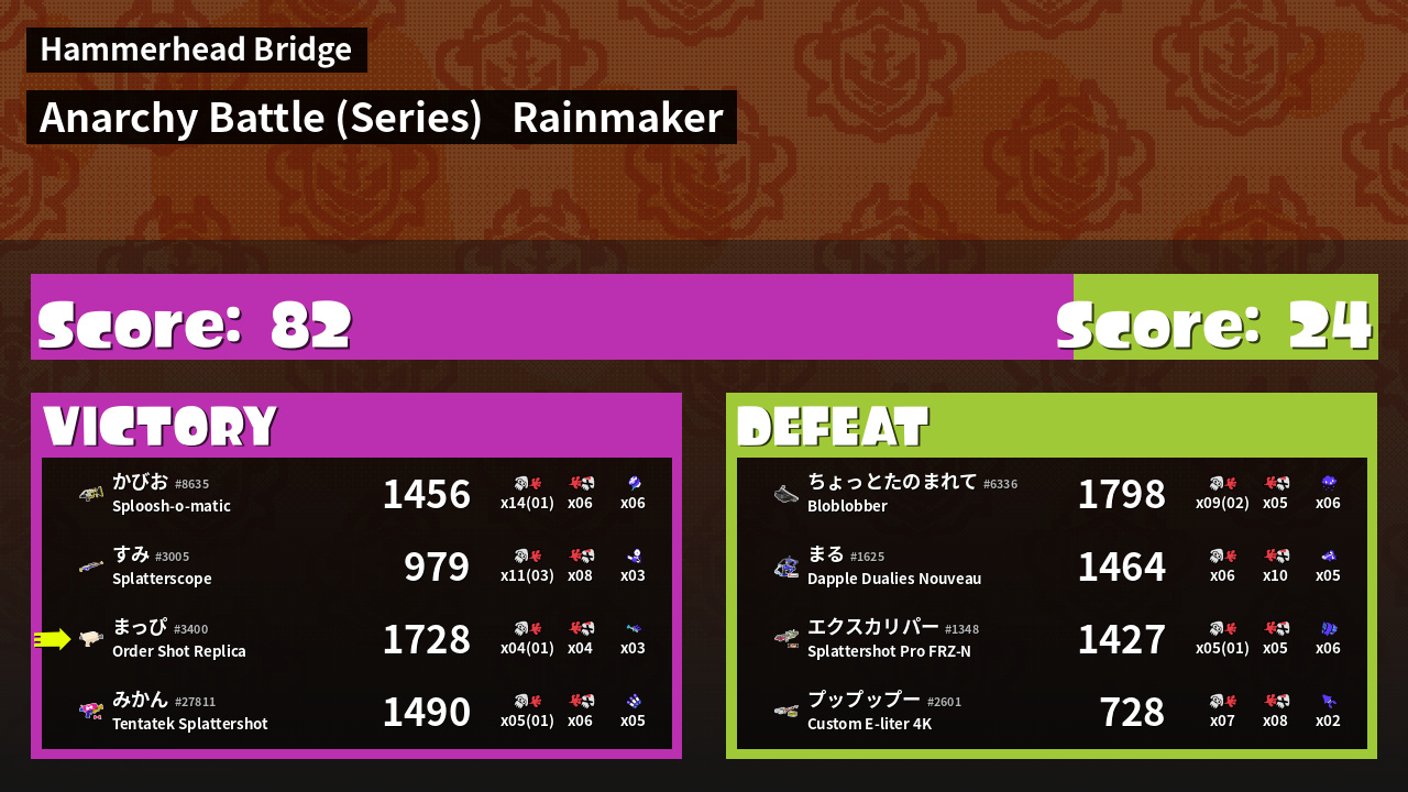 | Mode | Rainmaker - Anarchy Battle (Series) |