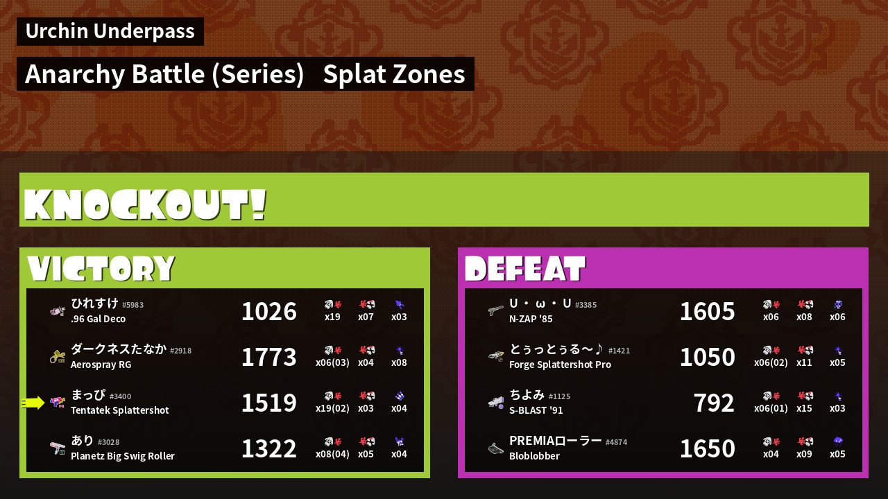 | Mode | Splat Zones - Anarchy Battle (Series) |