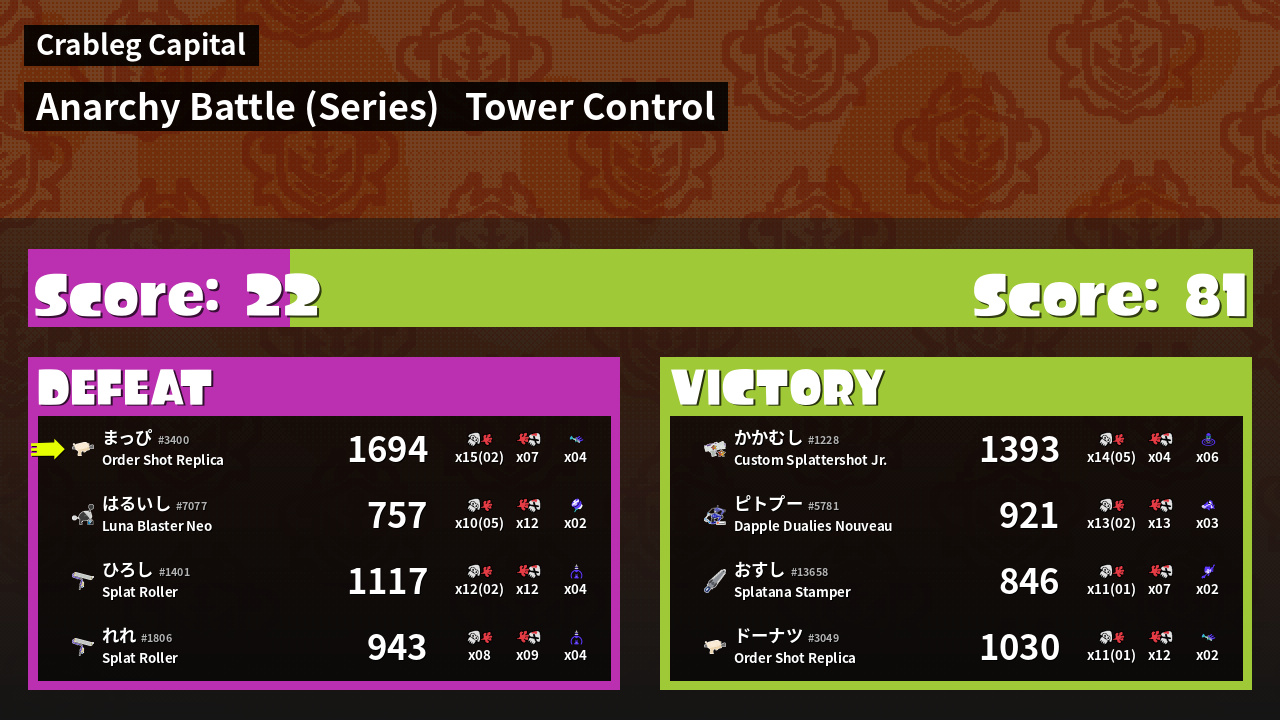 Results of まっぴ's Battle