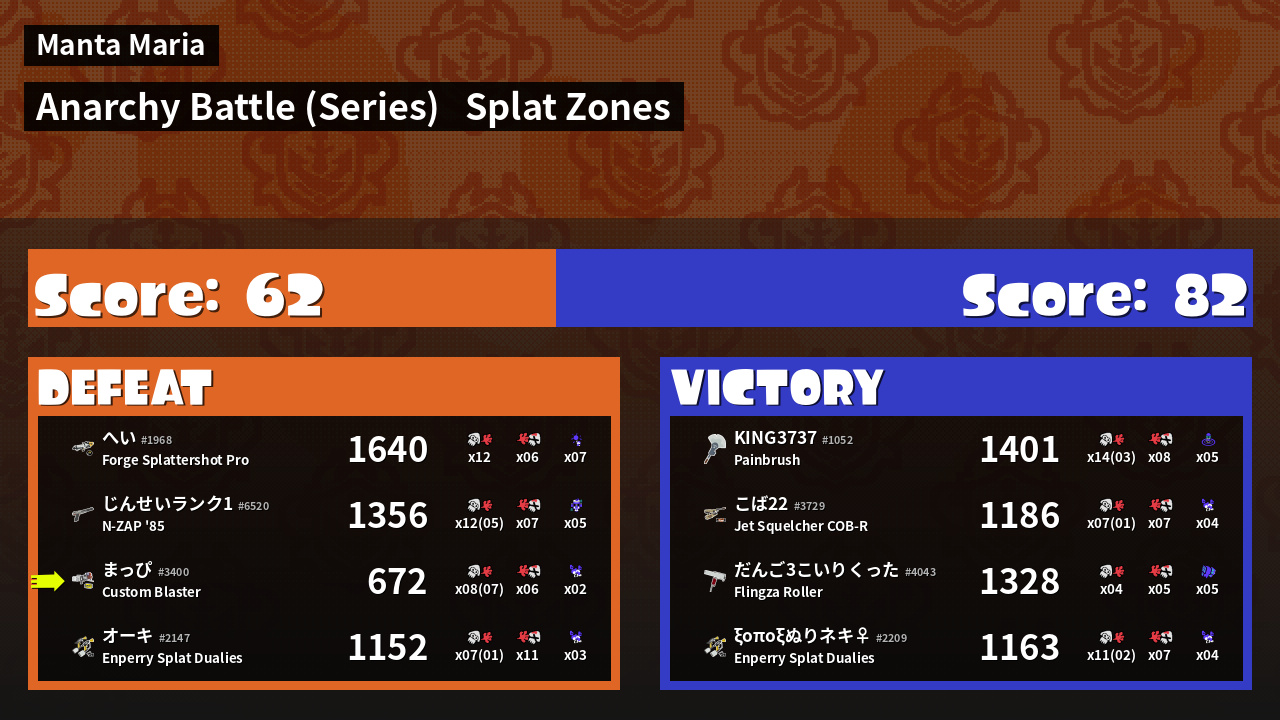 | Mode | Splat Zones - Anarchy Battle (Series) |
