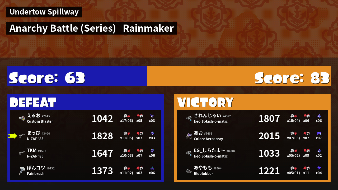 | Mode | Rainmaker - Anarchy Battle (Series) |