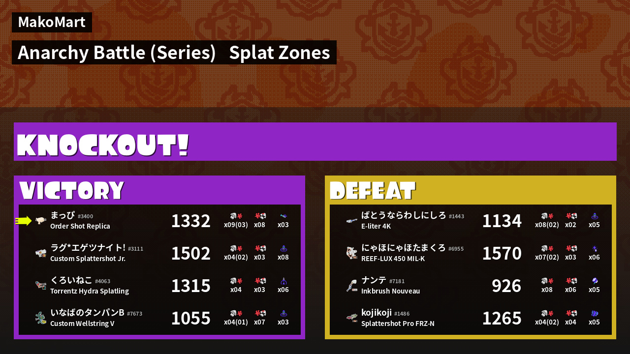 | Mode | Splat Zones - Anarchy Battle (Series) |