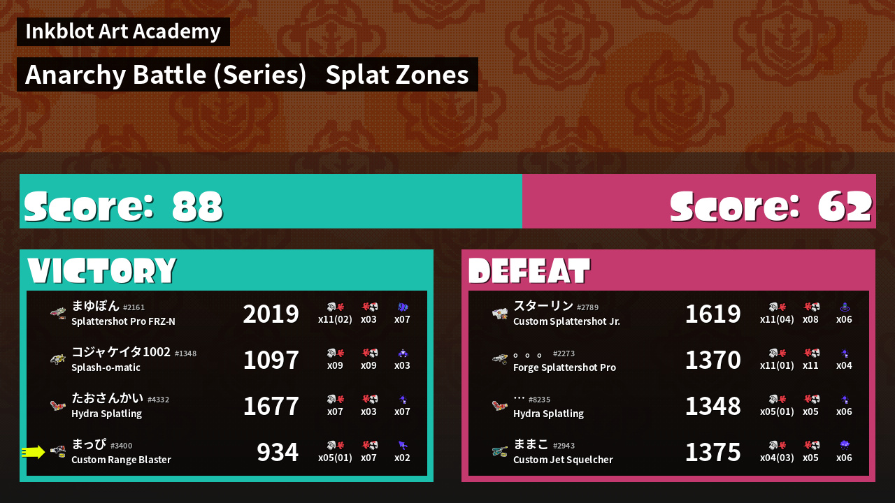 | Mode | Splat Zones - Anarchy Battle (Series) |