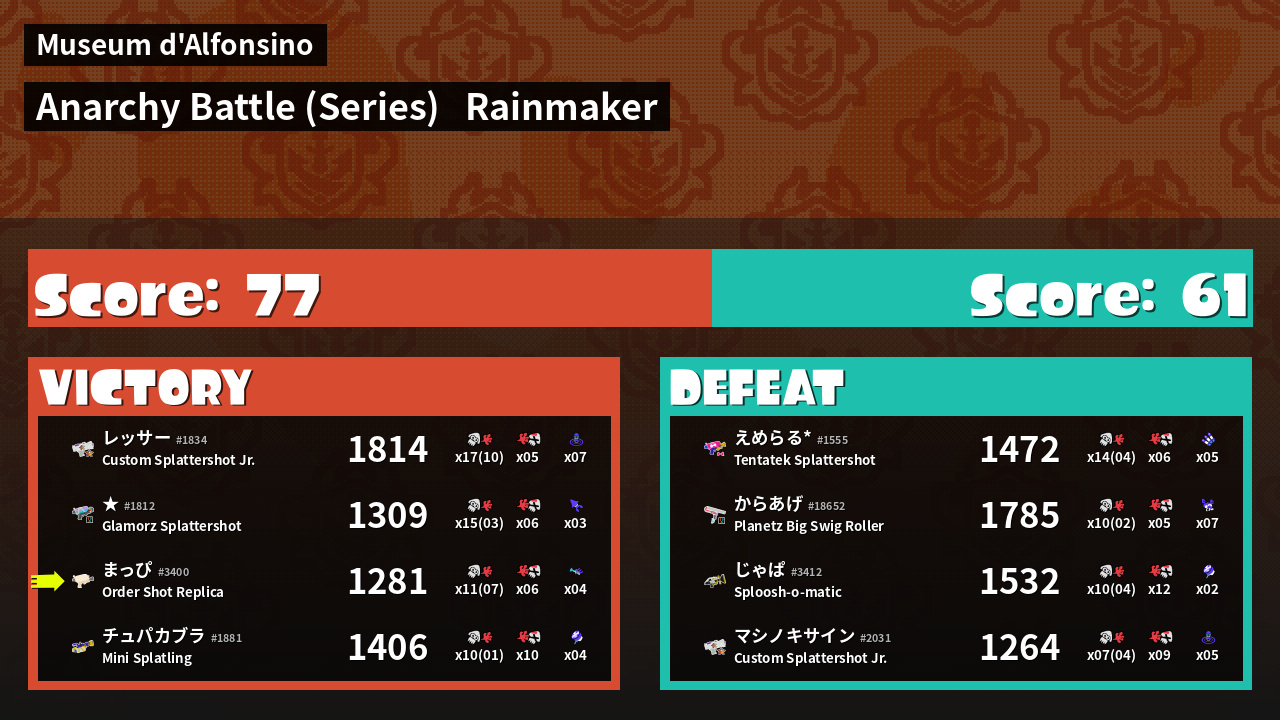Results of まっぴ's Battle