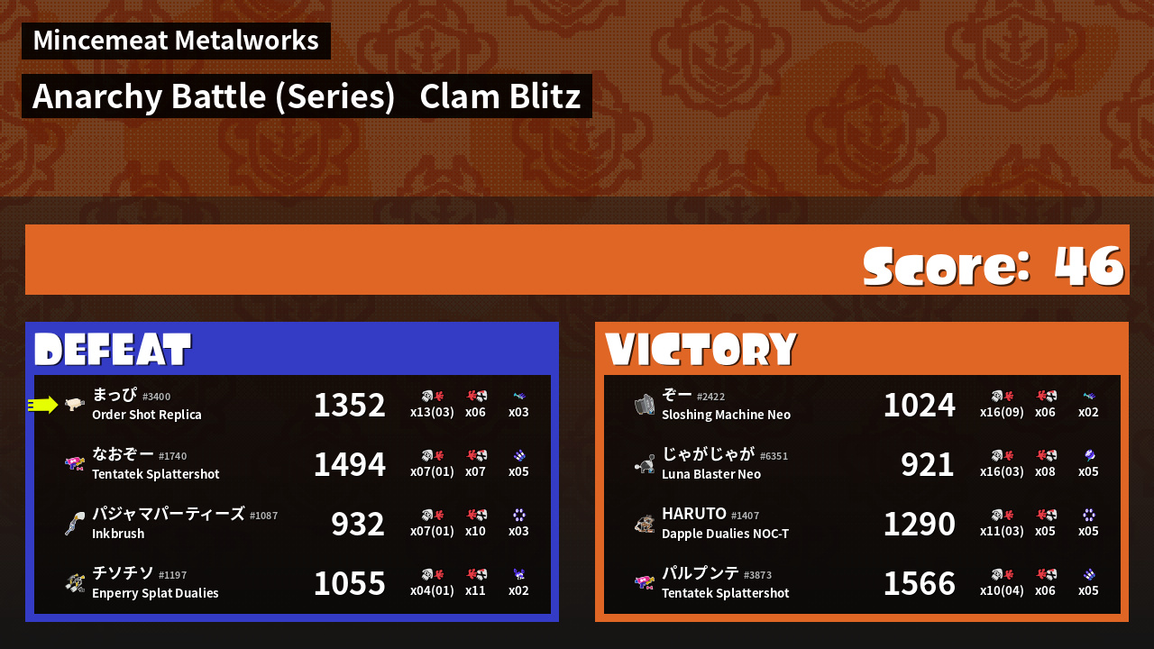 | Mode | Clam Blitz - Anarchy Battle (Series) |