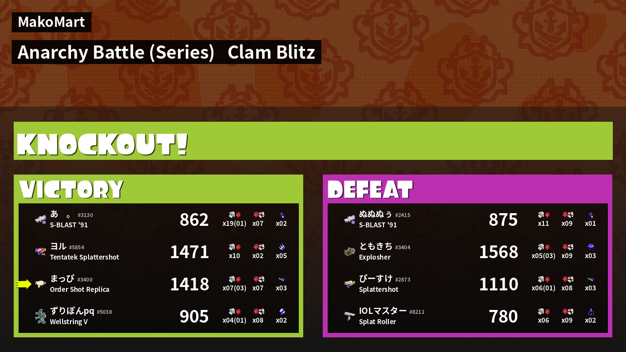 | Mode | Clam Blitz - Anarchy Battle (Series) |