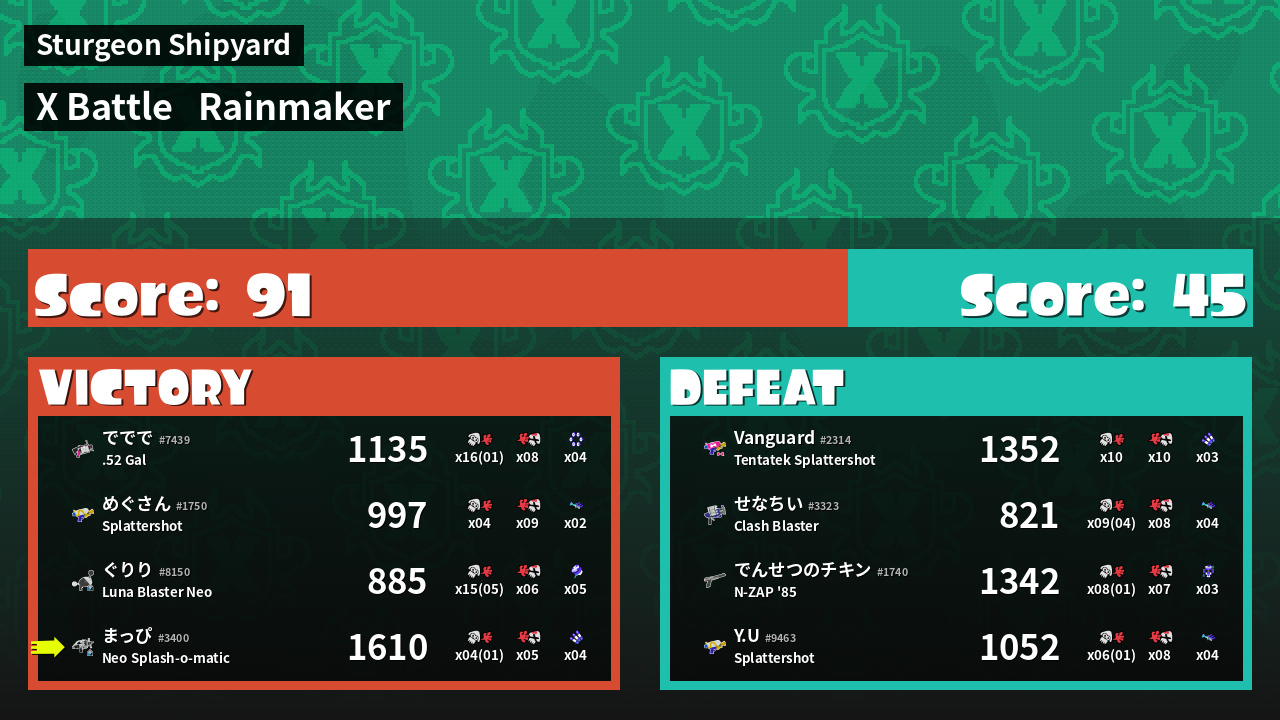 | Mode | Rainmaker - X Battle |