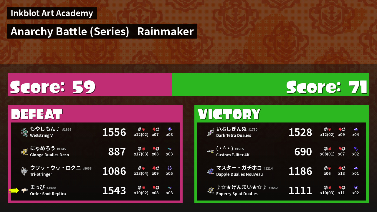 | Mode | Rainmaker - Anarchy Battle (Series) |