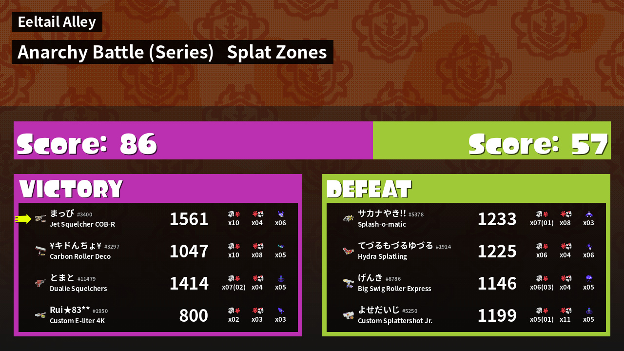 | Mode | Splat Zones - Anarchy Battle (Series) |