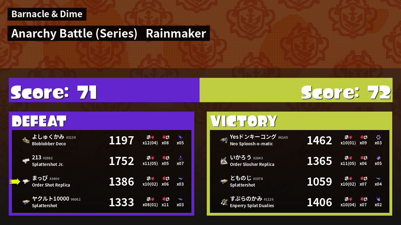 | Mode | Rainmaker - Anarchy Battle (Series) |