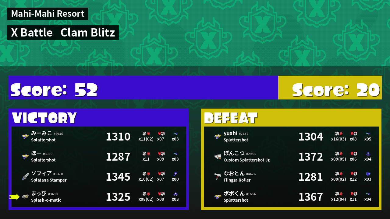 | Mode | Clam Blitz - X Battle |