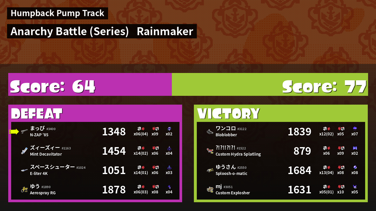 | Mode | Rainmaker - Anarchy Battle (Series) |