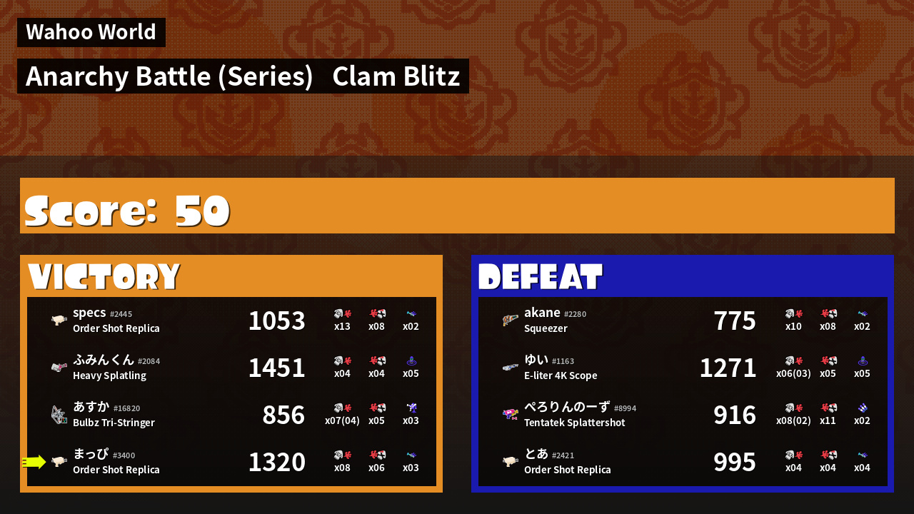 | Mode | Clam Blitz - Anarchy Battle (Series) |