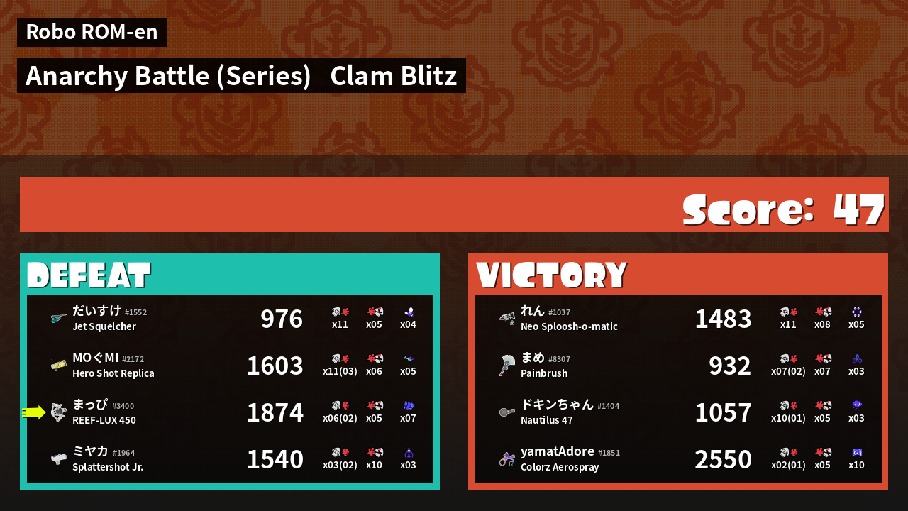 | Mode | Clam Blitz - Anarchy Battle (Series) |