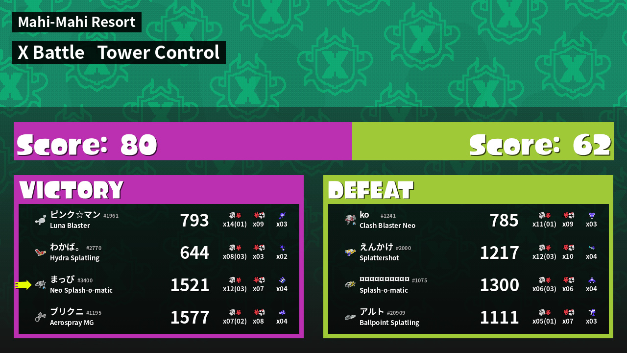 | Medals | Record-Score Setter #1 Splat Assister #1 Tower Stopper |