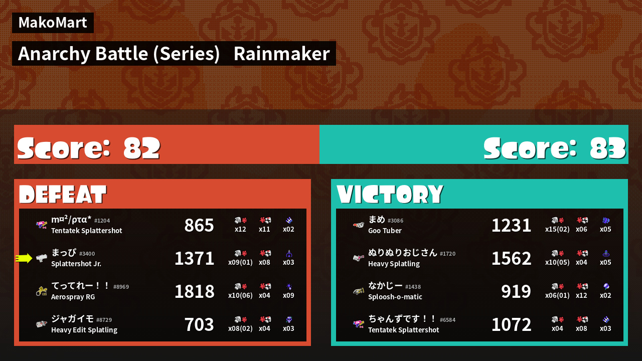 | Mode | Rainmaker - Anarchy Battle (Series) |
