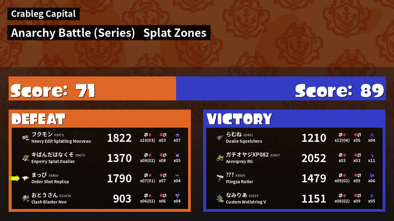 | Mode | Splat Zones - Anarchy Battle (Series) |
