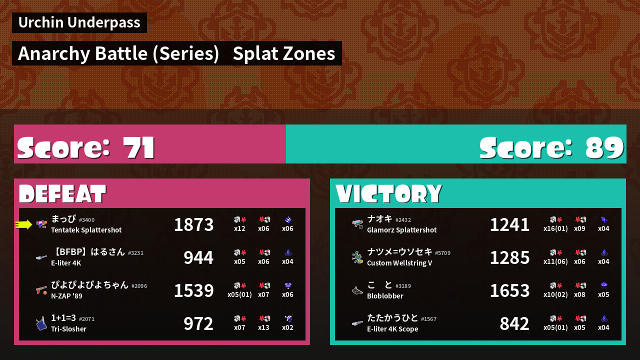 | Mode | Splat Zones - Anarchy Battle (Series) |