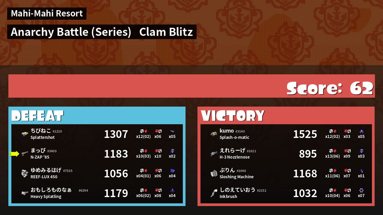 | Mode | Clam Blitz - Anarchy Battle (Series) |
