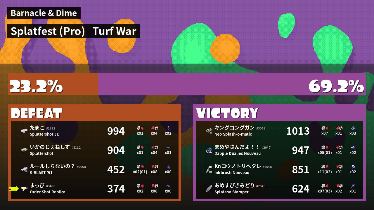 | Mode | Turf War - Splatfest (Pro) |