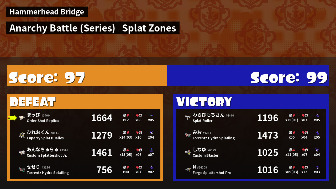 | Mode | Splat Zones - Anarchy Battle (Series) |