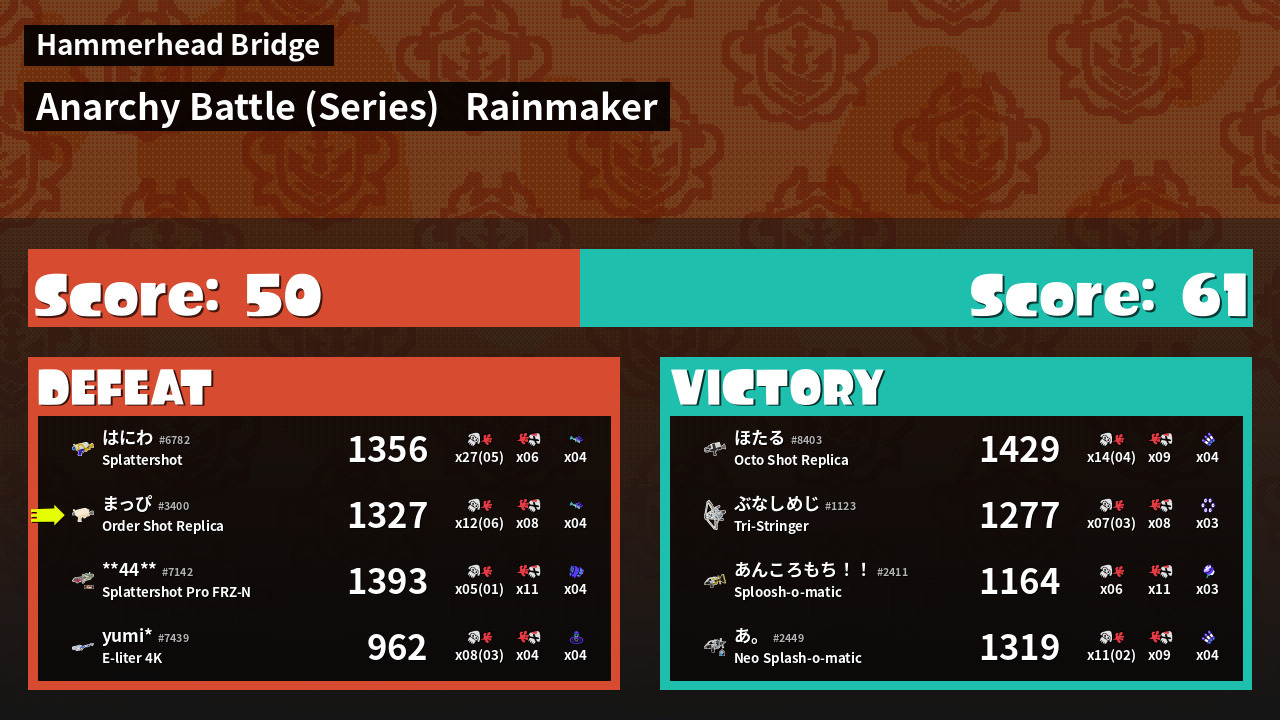 | Mode | Rainmaker - Anarchy Battle (Series) |